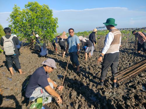 Foto Mahasiswa yang Membantu Menanam Mangrove