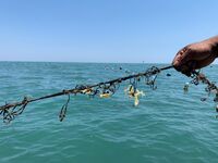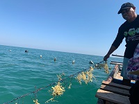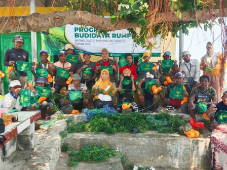 Baznas Bazis Kepulauan Seribu memberikan bantuan bibit rumput laut jenis eucheuma cottoni berikut tali utama dan tali pengikat bagi pembudidaya rumput laut di Pulau Tidung, Kepulauan Seribu Selatan.
